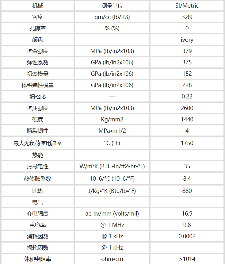 氧化鋁陶瓷有不同含量成分的,例如95,96,99,995,998氧化鋁陶瓷,每種材料的技術參數以及性能都會有些差異,下面科眾陶瓷廠主要講解995氧化鋁陶瓷的技術參數。