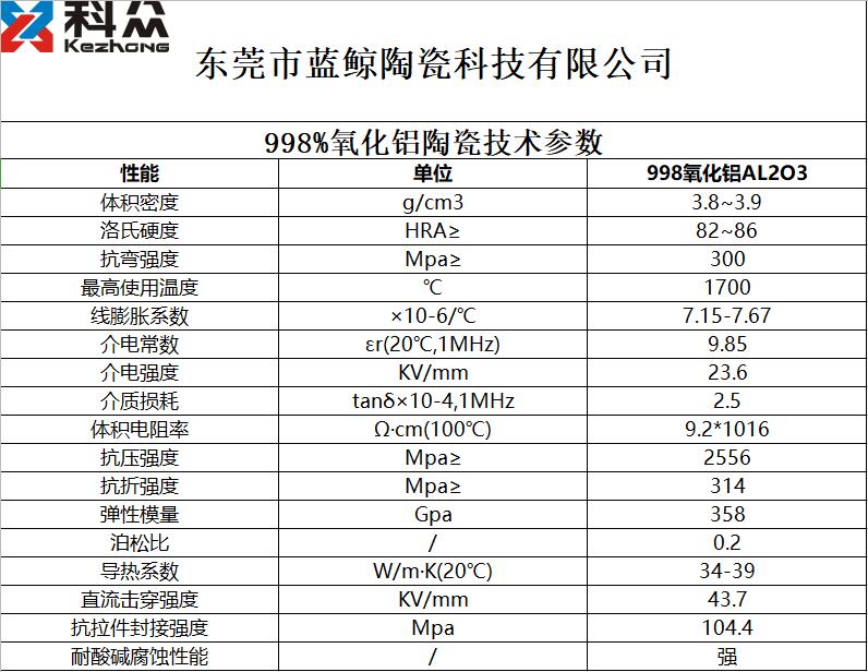 市場上使用998氧化鋁陶瓷的企業還是偏少,相對來說它適用于一些高端行業,例如用作載玻片、鹽酸實驗室等。另外其成本也高于95瓷與99瓷。科眾陶瓷使用的998%粉料均源于國外。