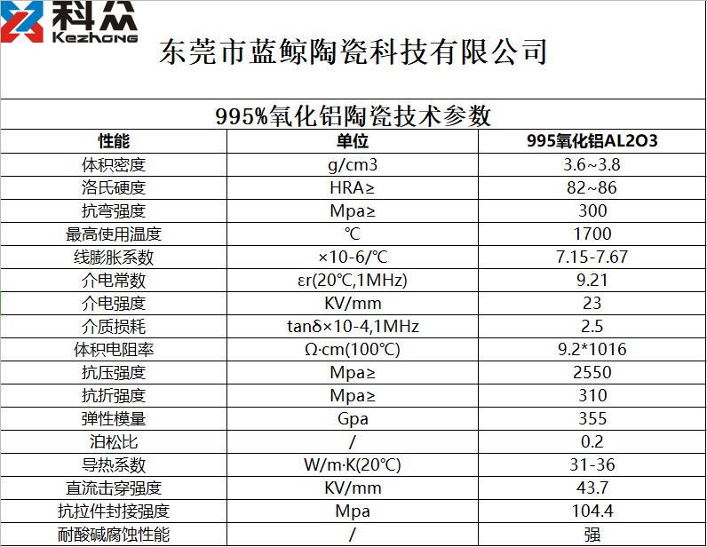 99.5%氧化鋁陶瓷技術(shù)參數(shù)